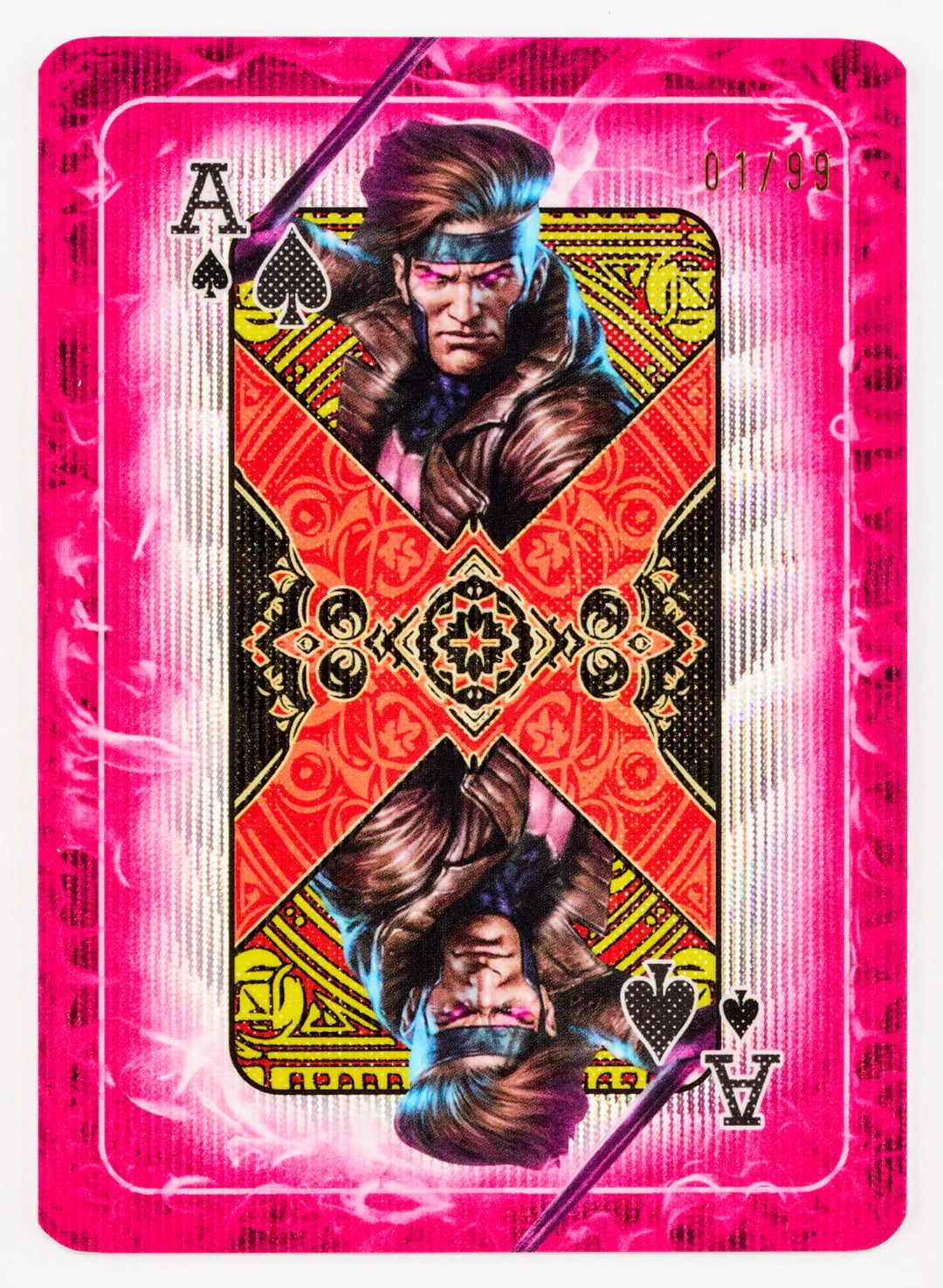 One of the most creative inserts in the product is Gambit’s Deck. Inspired by the fan-favorite X-Men character who famously charges and throws playing cards, this insert builds a full 52-card playing deck. Each card represents a suit and number or face from a traditional deck, all reimagined through the lens of Marvel. The cards are printed on double-sided Chrome and carry a premium feel, making the full deck a must-have for both Gambit fans and collectors who enjoy one-of-a-kind concepts. #’d to 99